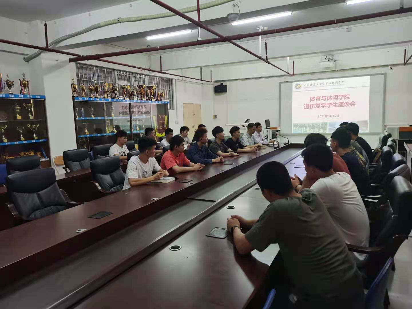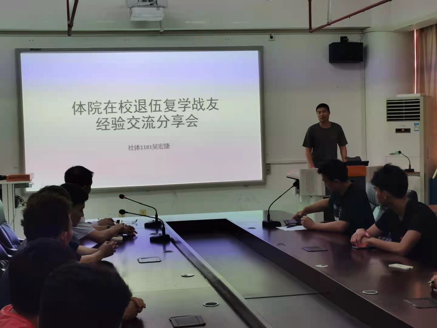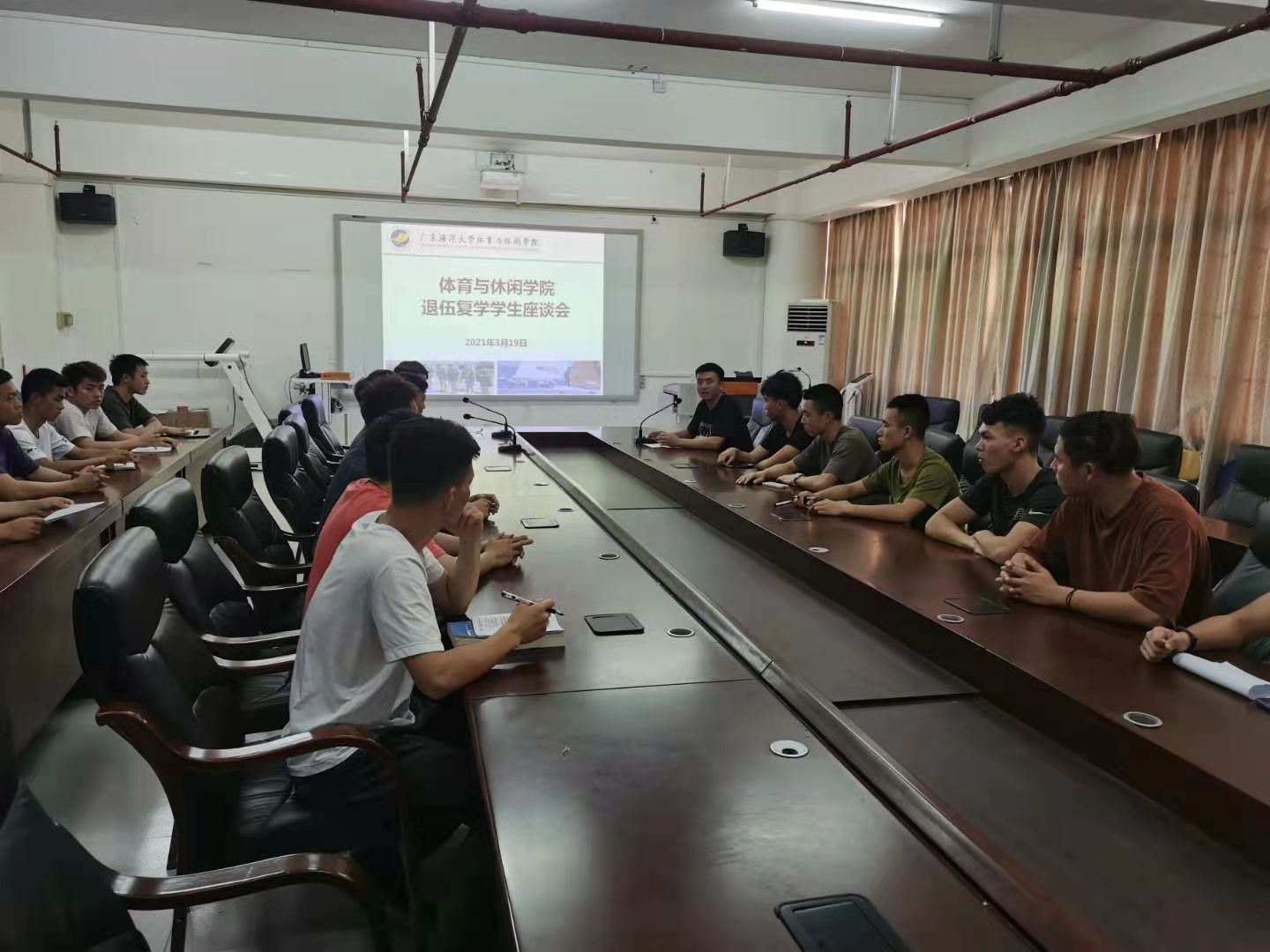 李新华书记、蔡法副书记和马建辉、夏慈忠老师在体育馆会议室与体院18名退役复学的同学们召开了一场经验座谈会。