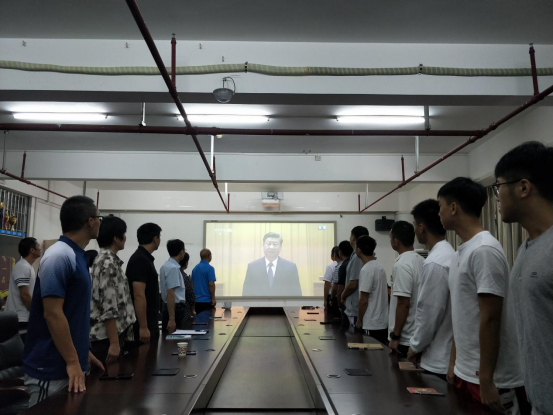 干部、师生党员起立高唱《义勇军进行曲》