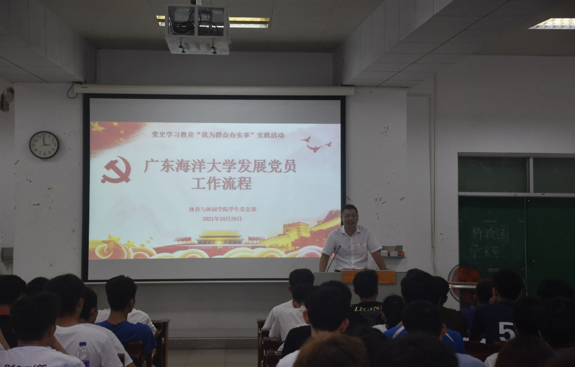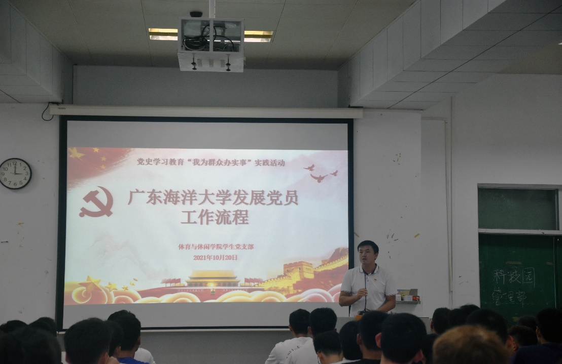 学生党支部书记夏慈忠以“发展党员工作流程”为主题,从入党申请、入党积极分子的确定和培养教育、发展对象的确定和考察、预备党员的接收、预备党员的教育考察和转正等五个环节,为同学们讲解了爱游戏