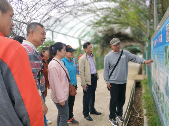 党委书记李新华带领大家走进了种质资源圃,园圃负责人马朝明老师向大家详细介绍了种质资源圃“智慧农业”系统和种质资源圃培育保存的主要果树品种:菠萝、菠萝蜜、莲雾、番石榴、毛叶枣(台湾青枣)、杨桃、蛋黄果、桃金娘(山稔子),大家听得认真记得仔细。经过科普学习实践大家了解到农业科技工作者和一线农业种植养育工作者的辛劳付出和取得重要成果,对我国种质资源库的在农业农村建设的重大战略地位。