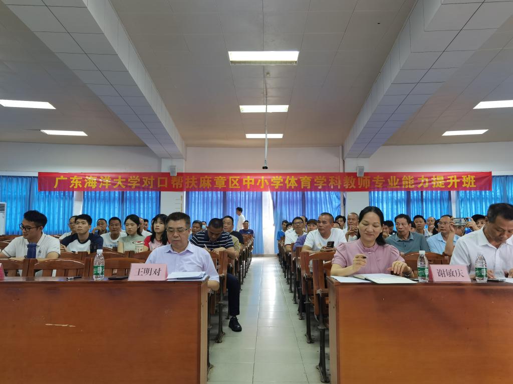 对口帮扶麻章区中小学体育学科教师专业能力培训班在广学楼328开班,麻章区教师发展中心谢敏庆副主任、黄传庆副书记,爱游戏