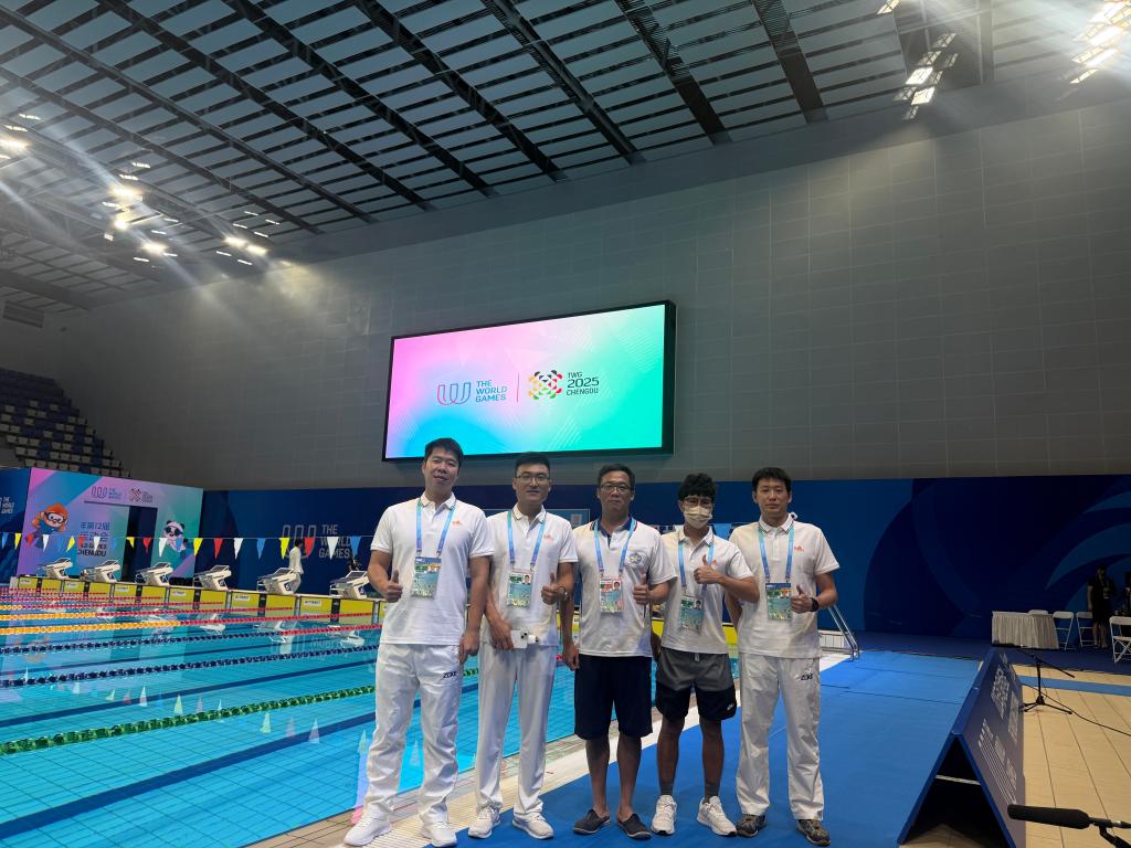 教师吴粤龙、袁东凭借其在水下运动领域的深厚的专业素养、丰富的国内外大赛执裁经验,经严格遴选,入选世运会潜水项目国际裁判组,承担本次赛事潜水赛事执裁工作。