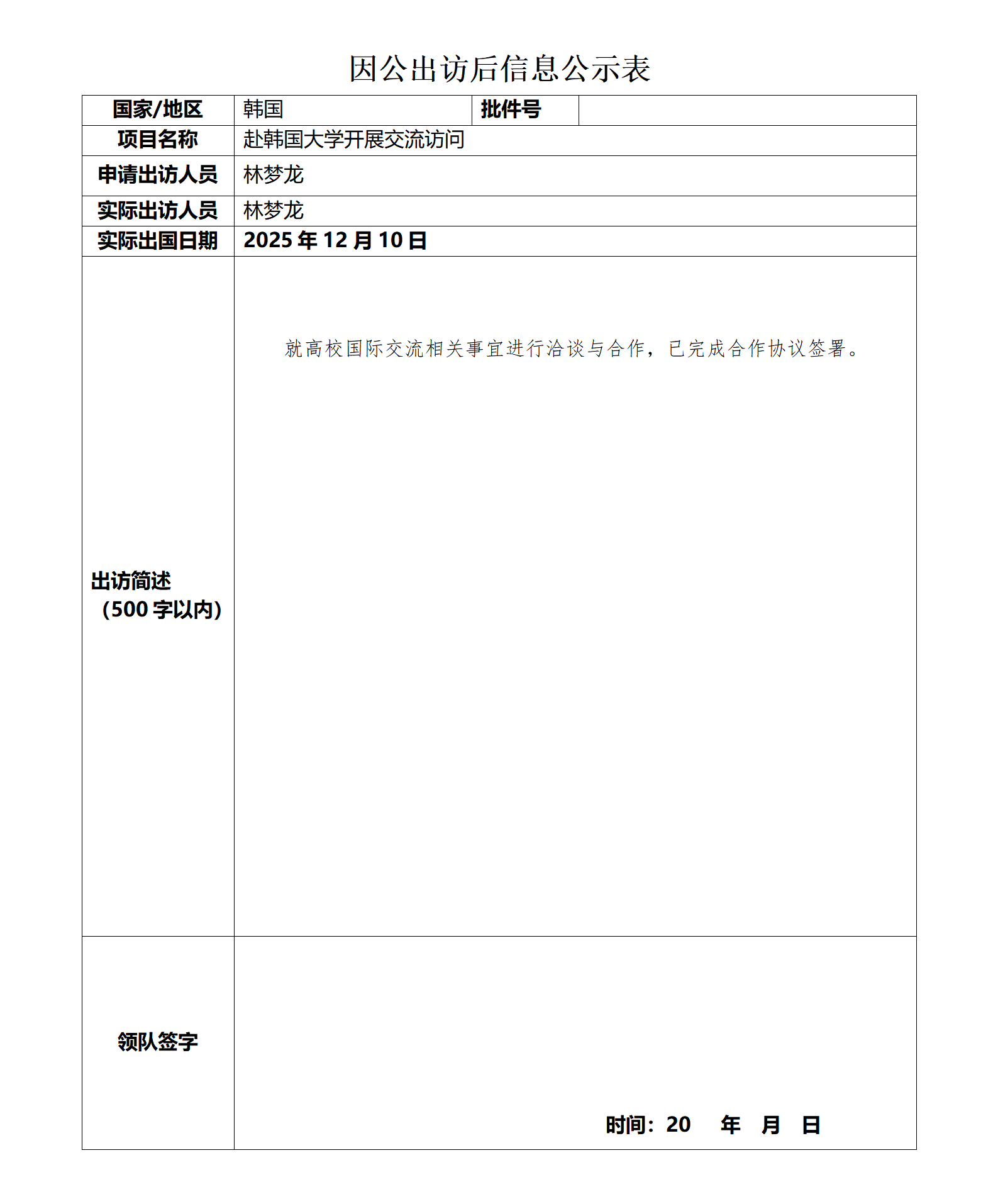 因公出访前信息公示表-韩国