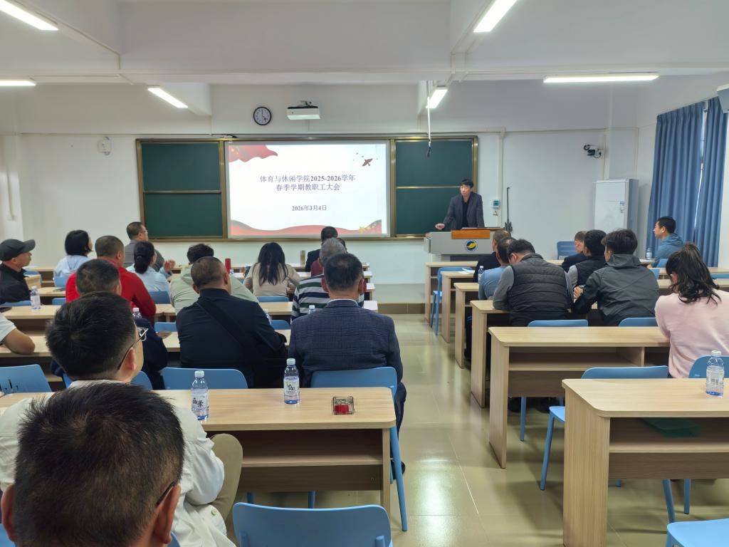 2026年主要工作;谭斌副书记就学生工作、工会工作、纪检工作及辅导员、班主任队伍建设等进行梳理,提出强化学生思想政治引领、提升管理服务效能的具体举措;施俊华副院长复盘教学成果、人才培养、申硕工作及专业建设等情况,部署教育教学改革与学科建设重点任务;刘培华副院长总结体育竞赛、场馆设施、校园跑及体质测试等工作,明确新一年竞技体育提质突破、硬件保障提档升级的工作目标。
